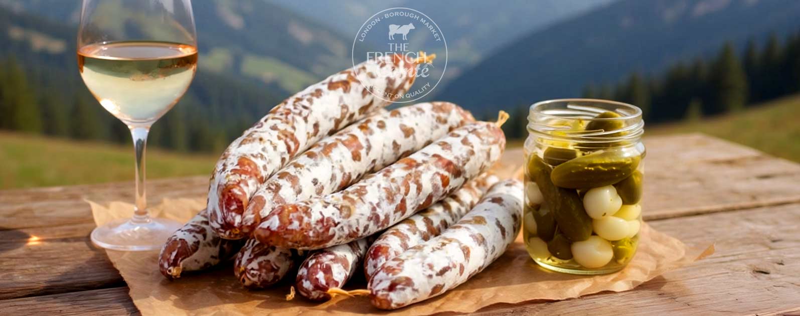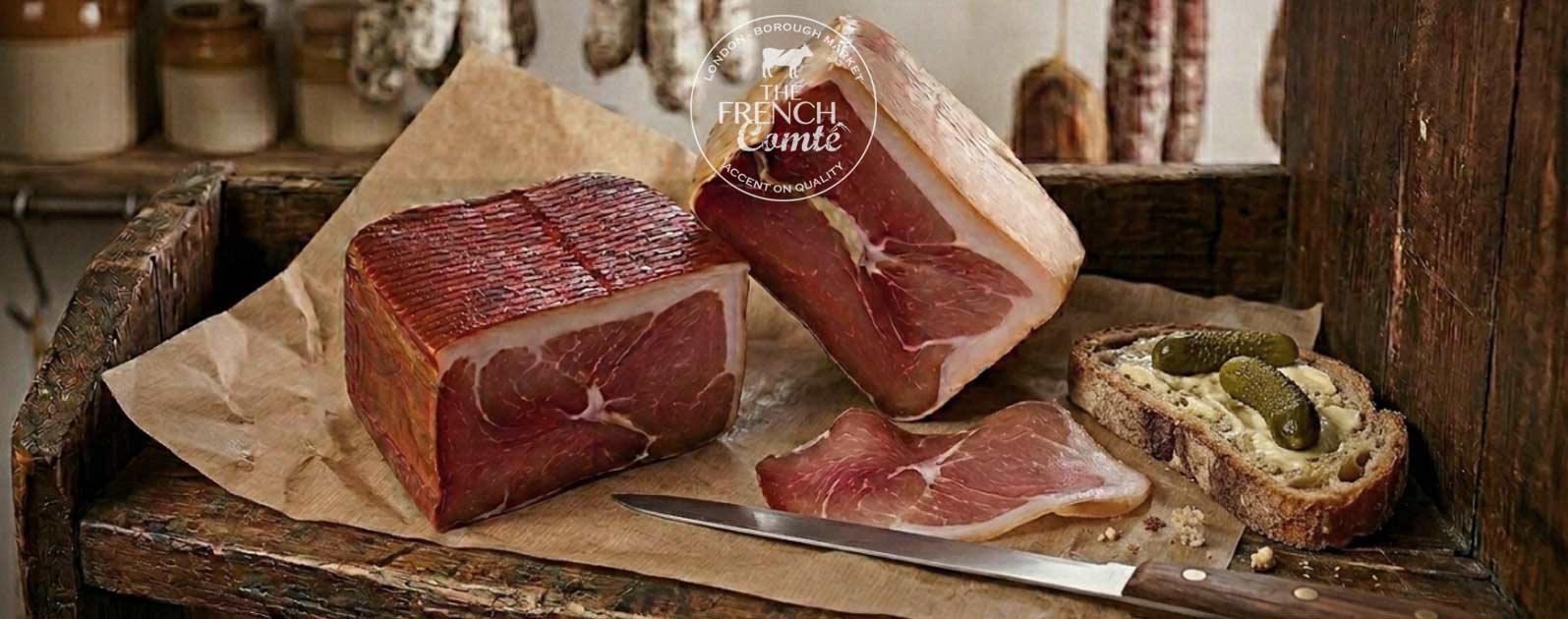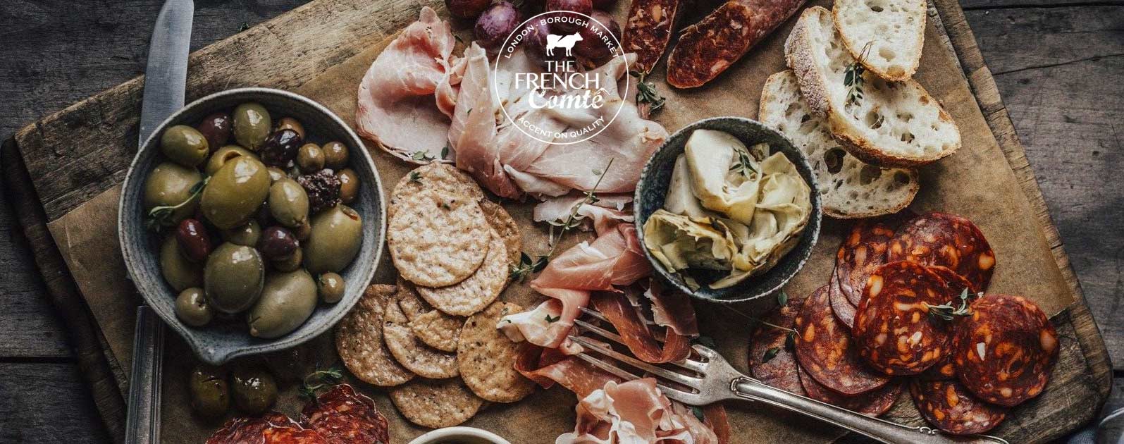 Our top charcuterie from Franche-Comté, in Eastern France, with hand-made saucissons de montagne, slow-smoked meats and cured hams are all made using the finest quality meat, raised locally.